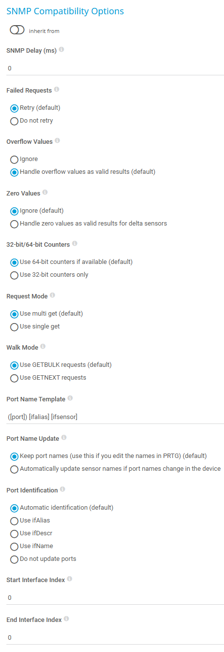 Enter the time in msec that PRTG waits before it sends another READ request when a request fails. The default delay is 0 msec. You can define a delay between 0 and 100.