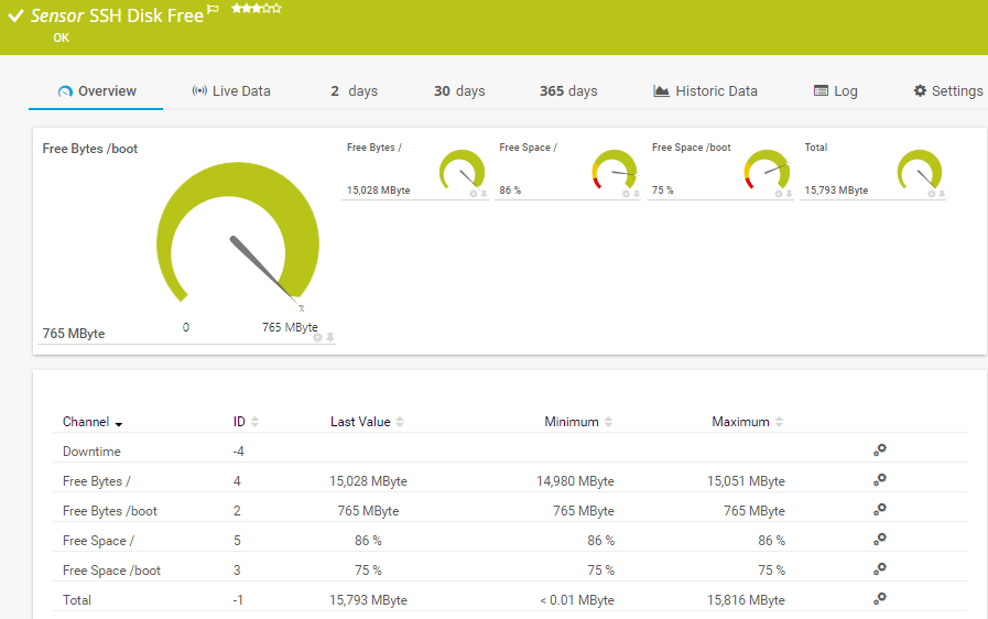 SSH Disk Free Sensor